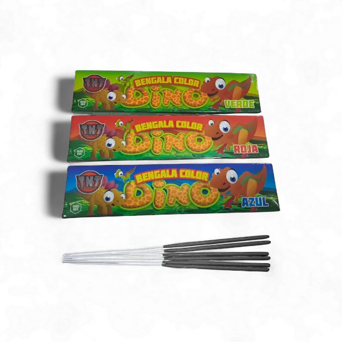 Bengala de tres colores con diseño Dino, ideal para niños.
