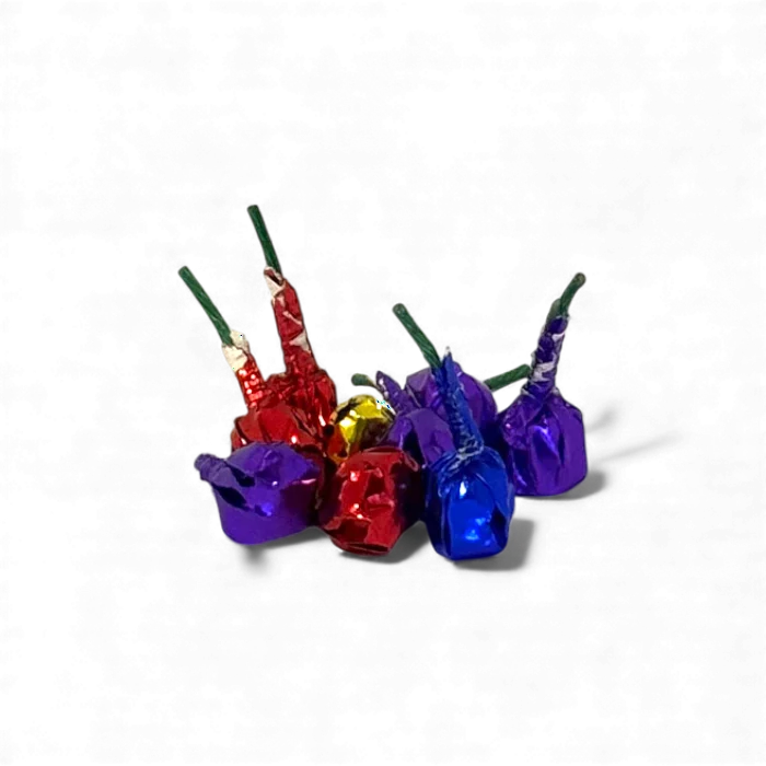 Cajita con 50 Mini Bombitas, un clásico de la pirotecnia infantil que estalla al contacto con el suelo generando un chasquido leve y seguro. No requiere encendido ni produce llama, lo que la convierte en una opción ideal para niños y juegos supervisados. Su simpleza y seguridad la vuelven una de las favoritas en celebraciones familiares.