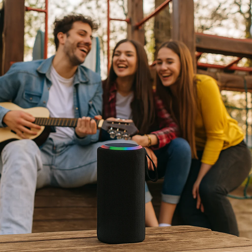 Compatible con Bluetooth 5.3, AUX, tarjeta TF, FM y TWS. Reproducí música desde múltiples dispositivos o conectalo a otro parlante igual para sonido estéreo.
