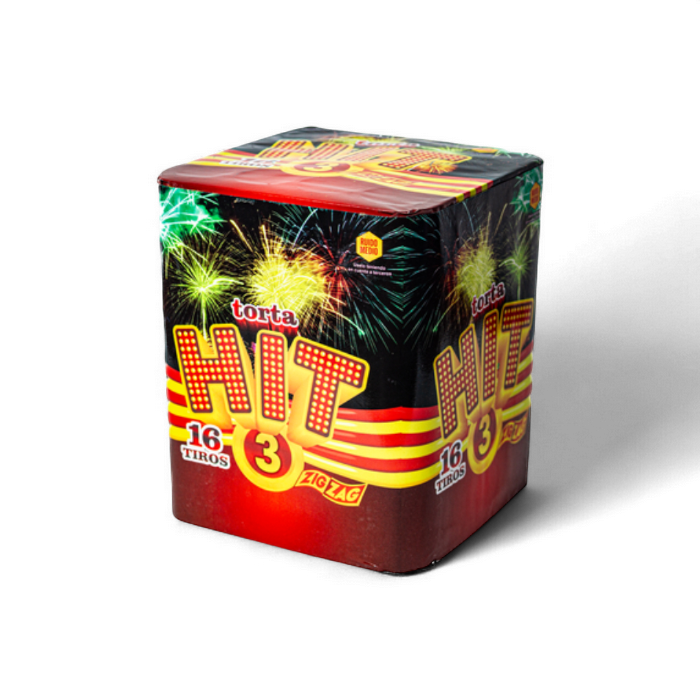 Torta Hit – 16 Tiros. Torta compacta con disparos intercalados de distintos colores. Ritmo constante y efecto medio, perfecta para aperturas.
