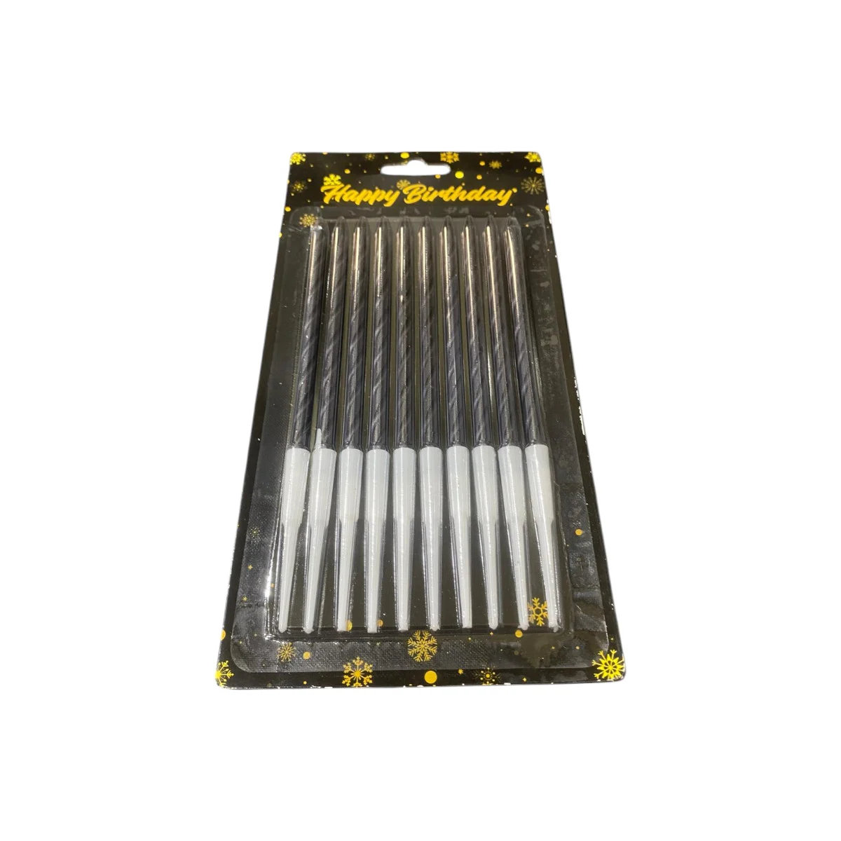 Velas torneadas color negro, para una torta sobria y con estilo. Ideales para combinar con tonos neutros o temáticas más formales.
